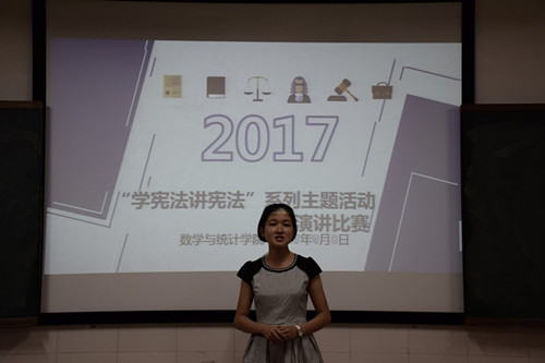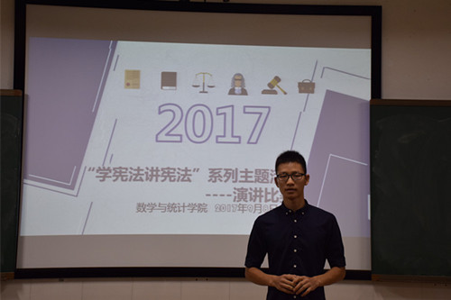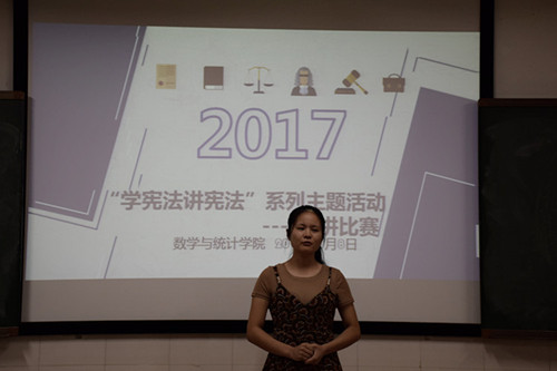 为了增强我院学生的法治观念,使我院学生深入了解宪法,尊崇宪法,弘扬宪法精神,提高对依法治国等理念的认知,9月8日晚19点我院在数学楼420举办了大学生“学宪法,讲宪法”主题演讲比赛。本次比赛由分团委书记刘琴、辅导员周长恩以及分团委学生会各部门部长担任评委,共9名学生作为选手参加了比赛。