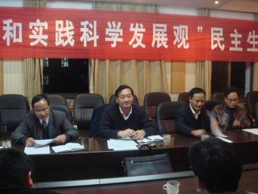 按照学院党委的统一部署,经请示学院党委组织部批准,数学系党总支于2008年12月18日晚上召开了2008年度党员领导干部民主生活会。学院刘福江副院长和党委组织部聂东明部长到会进行指导。会议由数学系党总支周炎林书记主持,数学系副处级以上领导干部和全体教职工党员参加了会议。