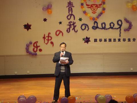 12月28号晚7点,数学系元旦晚会在东校区音乐系排演厅举行,莅临本次晚会的嘉宾有数学系主任罗李平教授、数学系党总支周炎林书记、数学系党总支林琼副书记、数学系辅导员肖炜老师以及数学系各年级的任课老师。党总支书记周炎林代表全系学生致新年贺词,并对数学系2009年的学习和工作提出了新的要求。