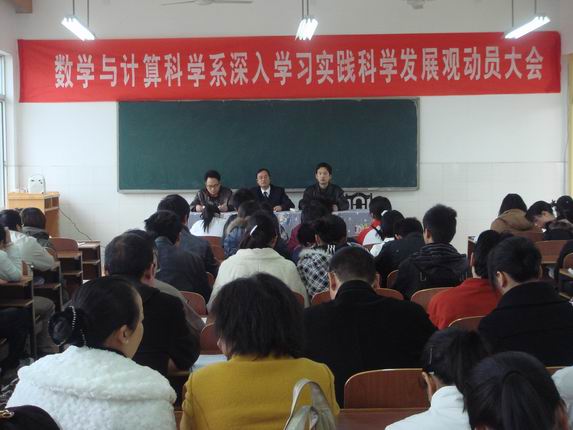 3月31日下午,数学与计算科学系在东校区数学楼421教室召开深入学习实践科学发展观活动动员大会。数学与计算科学系全体教职工及系所有学生党员出席了会议。大会由数学与计算科学系主任罗李平教授主持。