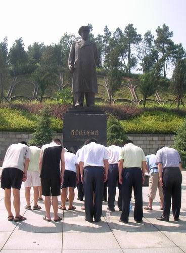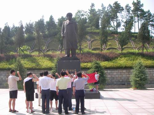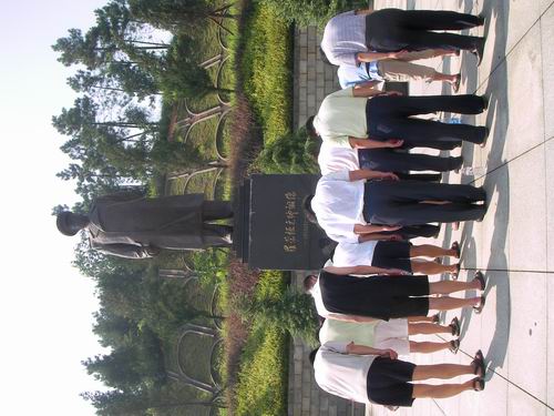 在挺拔高大的罗荣桓元帅铜像前,党员们展开了鲜红的党旗。党总支书记周炎林同志做了简短的讲话。他说,我系党总支的学习实践科学发展观活动正在进行整改落实阶段的工作。为了巩固学习成果,提高党员对党的事业的坚定信念,促进党员参加学习实践活动的积极性和自觉性,同时也是纪念建党88周年,党总支组织全体教职工党员重温入党誓词、缅怀革命先烈的光辉事迹,就是让党员增强党员意识,牢记党员责任,思考如何在本职岗位上保持先进,为实践数学与计算科学系又好又快发展做出贡献。 随后,全体党员向罗荣桓元帅铜像三鞠躬,并举起右手,像入党时一样,庄严地向着党旗和代表千万革命先烈的纪念碑又一次发出了响亮的誓言。