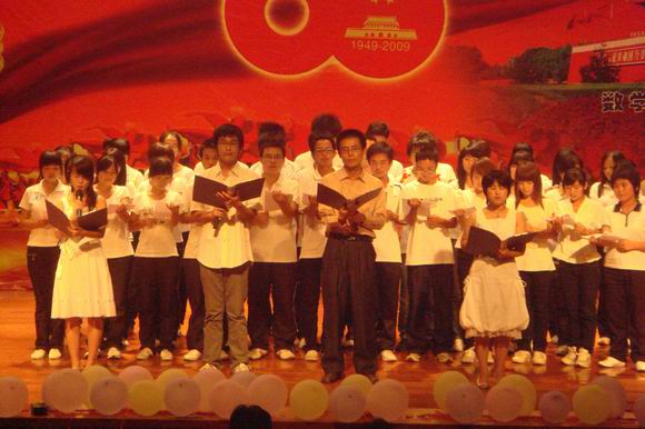 9 月26日晚,数学与计算科学系庆国庆暨09迎新晚会在东校区音乐厅举行。系主任罗李平、党总支书记周炎林、副主任杨柳、党总支副书记林琼、办公室主任肖淑群等系领导和数学与计算科学系全体教师以及09级新生观看了演出。