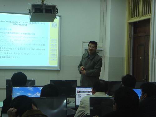 下午3点整,数学与计算科学系罗李平教授首先作了题为“(脉冲)向量偏泛函微分方程H-振动的最新研究成果”的学术报告。他从向量微分方程的H-振动概念的引入背景、向量偏泛函微分方程的H-振动结果、脉冲向量偏泛函微分方程的H-振动结果及进一步的研究工作等四个方面介绍了有关(脉冲)向量偏泛函微分方程H-振动的最新研究成果,其中也包括他本人最近在该领域所做的一些研究工作,所引文献详实,所用方法有创造性,所获结果是新的,目前国内外还鲜有报道。此外上述成果的研究思想和方法具有重大的理论价值和推广价值。
