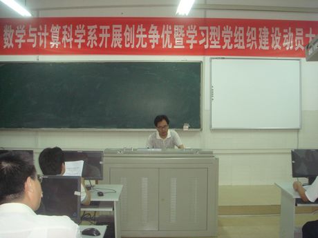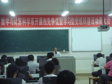 6月25日 下午,数学与计算科学系创先争优暨学习型党组织建设活动动员大会在该系多媒体教室隆重召开。系领导周炎林、罗李平、林琼、杨柳出席大会,全体教职工和学生党员参加了大会。大会由系主任、创先争优活动领导小组副组长罗李平同志主持。