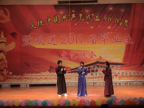 晚会节目精彩纷呈:合唱、朗诵、舞蹈、相声、小品、情景剧、双簧等各种形式的表演给现场的师生带来了一场视听盛宴。由09数一、数二班合唱的《山丹丹开花红艳艳》,赢得了全场观众的喝彩;《盛世中国》表达了莘莘学子对祖国的无限热爱;10数三班的情景剧《翻天覆地》赞美了伟大的社会主义,令现场的师生们热血澎湃;双人舞《同行》、小品《放心去飞》及《毕业生》,表达了学弟学妹们对学长学姐们的美好祝愿;引人入胜的舞蹈《青花瓷》、柔美浪漫的《送别》、活力十足的《浪漫樱花》、魅力四射肚皮舞《WAWA》,让观众大呼过瘾;由肖炜老师联合3名学生表演的相声《我们的大学》将晚会推向了高潮,赢得的欢呼声、掌声不断。