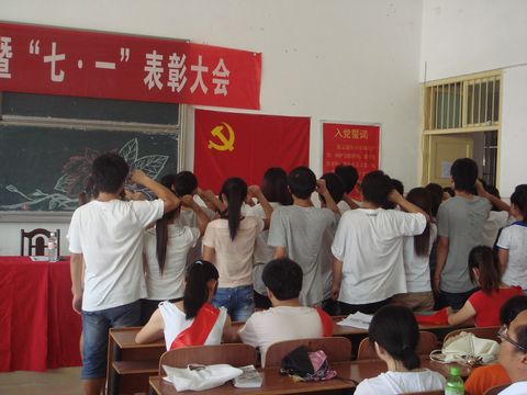 大会在嘹亮的《国歌》声中拉开了序幕,首先进行了新党员入党宣誓仪式,系党总支副书记林琼同志宣读了新党员名单,系团总支书记王方晖同志带领新党员在党旗下庄严的宣誓。接着,系党总支委员、副主任杨柳同志宣读了《关于表彰优秀学生党员的决定》和《关于表彰2010~2011学年度优秀学生干部的决定》,系领导班子成员为受到表彰的优秀党员和优秀干部颁奖。蒋涛同学、熊丹丽同学分别代表新党员和优秀党员发言,他们表达了作为一名共产党员,要充分发挥先锋模范作用,以实际行动来践行创先争优,为学院、数计系的建设贡献更大力量的信念和决心。