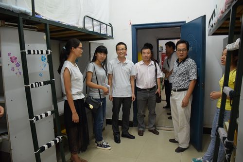 13日下午,学院领导与行政人员,以及新生五位班主任一同走访新生宿舍。学院领导与老师耐心地走访每一间新生宿舍。给新生带去新学期的第一次问候。和新生愉快交谈的同时还就安全、生活、学习等方面提醒大家提高自我保护意识,加强自身防范,妥善保管好贵重物品,要积极调整自身心态,尽快适应新环境,融入新集体,室友之间要相互理解帮助,同学之间互相宽容体谅。大学生要把学习放在第一位,多去实践,多读书,读好书。