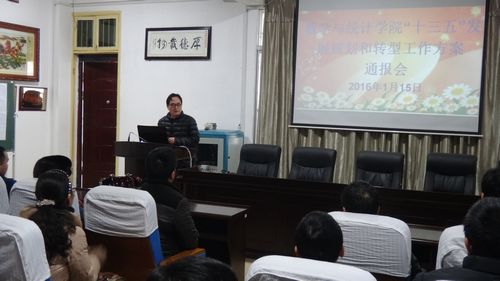 2016年1月15日下午,我院在数学楼三楼学术报告厅举行了“十三五”发展规划及转型工作方案通报会。我院全体教职员工参加了该会议,会议由院长罗李平教授主持。