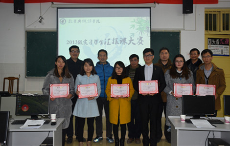 比赛过程中,二十二名学生在讲台上充满自信,饱含激情;语言清晰精练,声情并茂;灵活驾驭教学内容,师生互动积极。他们从教学实际出发,突破原有的模式,运用现代教育技术辅助教学手段,突出教学重点,化解教学难点,实现了学生听、看、想的统一,加深了学生对教学内容的理解。充分展示了各自的教学风格和能力。大赛经过激烈的角逐,最后,孙玉洁、刘莹、何黠、陈倩四名同学脱颖而出,荣获所在小组特等奖。