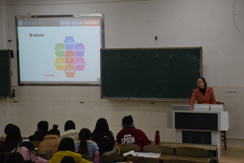 12月15日下午,我院在数学楼507教室举行了2014级数学与应用数学专业“卓越班”第三期普训讲座,讲座特邀教育科学学院刘丽萍老师为卓越班普训学员进行PPT课件制作技巧辅导。