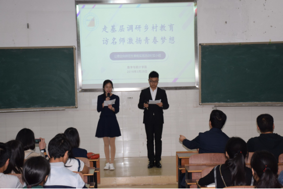 3月29日晚七点半,我院在数学楼505教室开展了2017级公费定向师范生“走基层调研乡村教育,访名师激扬青春梦想”主题教育活动。莅临本次活动嘉宾领导有院长杨柳、党总支副书记谭全球、副院长李浏兰、辅导员刘志刚、周长恩、黄灿老师、王艳群老师以及2013届优秀校友代表欧苏杭,2017级全体公费定向师范生参加了本次活动。