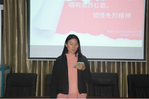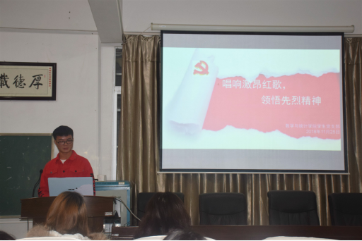 为了弘扬社会主义先进文化,培养大学生主流意识形态。11月25日晚7点,我院学生党支部于数学楼三楼会议室召开以“唱响激昂红歌,领悟先烈精神”为主题的党日活动。本次活动由党建部部长陈咪同学主持,我院学生第一、二党支部全体党员参加了此次活动。