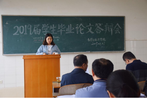 4月27日上午8点30,我院于数学楼316-319,418-421各教室举行了2019届学生毕业论文答辩会。答辩评审委员会由院长杨柳,副院长李龙以及各专任教师黄海午、李元旦、吴雄韬、曾云辉、宫兆刚、彭仁忠、刘刚和陈源担任,下设9个小组。我院副书记谭全球,辅导员周长恩老师以及教学秘书聂春芳老师进行组织协调。