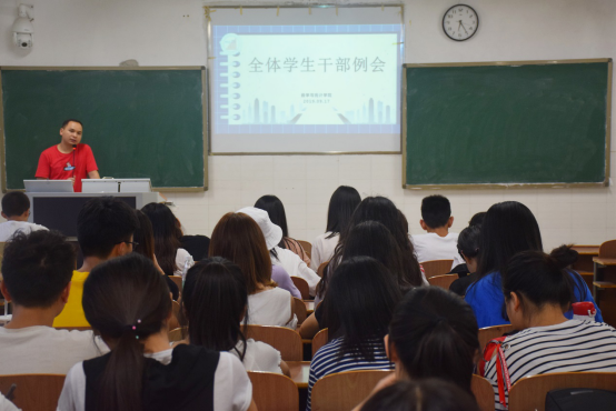 9月17日下午,我院在数学楼406教师召开了新学期第二次全体学生干部例会。我院辅导员刘琴、周长恩老师出席会议,全体学生干部参加了本次会议。
