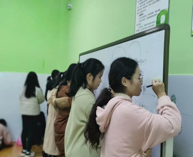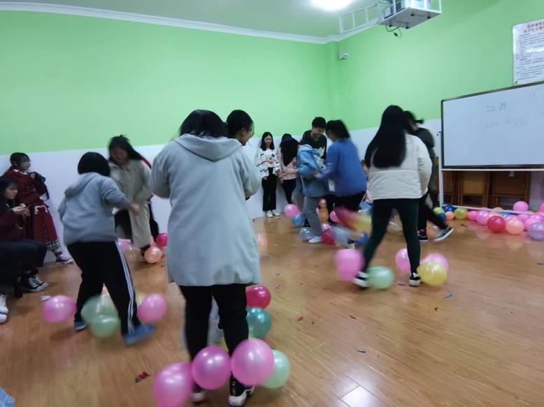 活动伊始,主持人首先为大家介绍了活动目的以及流程,接着同学们随机分成四个小组,并通过热情的讨论确定了组长、组名以及口号,再由组长依次进行展示。各个小组别出心裁的组名和口号博得满堂喝彩。紧接着就是备受瞩目的游戏环节,活动共设置了“萝卜蹲”、“树洞和你说说话”、“爆炸烦恼”和“写给四年后的自己”四个游戏。各组成员密切配合,齐心协力地投入到游戏中。随着游戏的进行,大家的热情也持续高涨,每个人都沉浸在了欢乐的氛围之中。最后,活动以主持人的总结发言和大合照圆满结束。