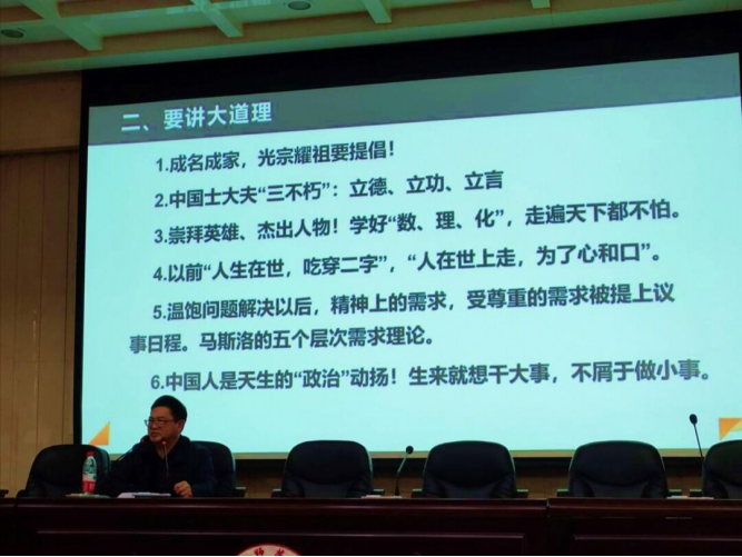 会上,王校长以如何成为一名优秀的人民教师为切入点展开报告。他首先根据自己多年的工作经验及个人感悟,从“选择和努力”、“教育与教学”、“做人与做事”三个方面进行了系统的阐述。同时,王校长强调道,每个人都应该找准自己的人生定位,并为之奋斗一生;在教育教学方面,更要立德树人,不要一昧追求分数,只有做好德育工作,才能提高教学质量。随后,董分粮主席从“三禁一讲”措施的落实讲起。他表示,学生的规则意识比守规则本身更重要,教师培养的是人而非顺从的奴才。此外,他还表示,阅读习惯的养成是最重要的。教育是慢的艺术,来不得半点急躁,教师和家长都要有民主、包容和执着的心。而班主任的工作重心则在于征心、服心、育心,作为班主任,一定要以足够的信任和鼓励促进学生的全面发展。