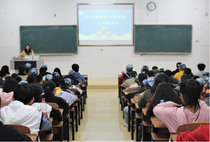 为加强我院20级新生教育管理,引导学生深入了解、认真学习、严格遵守校规校纪,10月22日、27日晚七点半,我院在数学楼505、507教室召开了新生校规校纪教育讲座。本次讲座由我院辅导员刘琴老师主讲,2020级全体学生到场聆听。