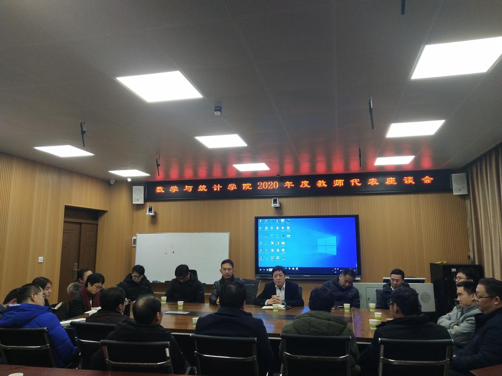 2020年12月23日下午,我院在理科1楼(数学楼)311教室召开教师代表座谈会。14名教师代表参加了座谈会。学院全体班子成员出席了座谈会,认真听取代表意见和建议。会议由学院党总支书记杨家骏主持。