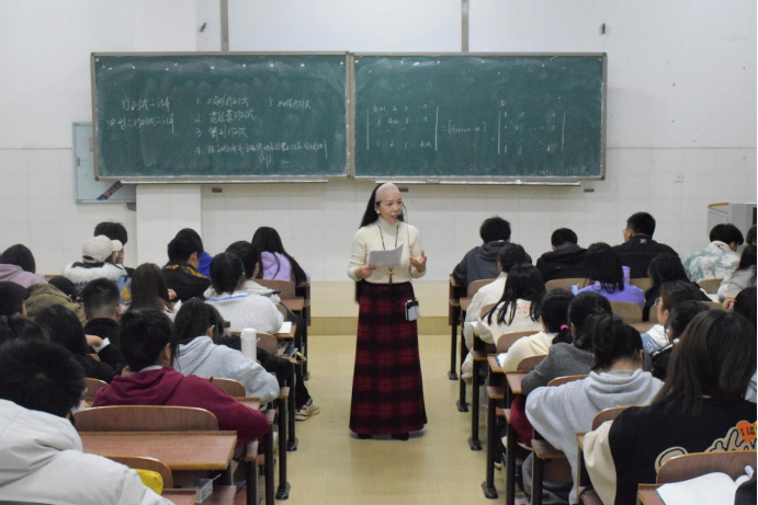 根据学风部10月份的学生学习情况调查数据,发现我院2021级大部分学生对学习《高等代数》感到吃力,引起了学院高度重视,第一时间召开了党政联席会议研究此事。会议决定组织教师团队对2021级新生开展课后辅导服务,相信工作将有序推进。我院于11月25日晚7点半,在理科楼(1)507教室举行了《高等代数》辅导报告大会。本次报告会由我院黄灿老师主讲,我院2101、2102、21T1、21X1班全体同学参加。