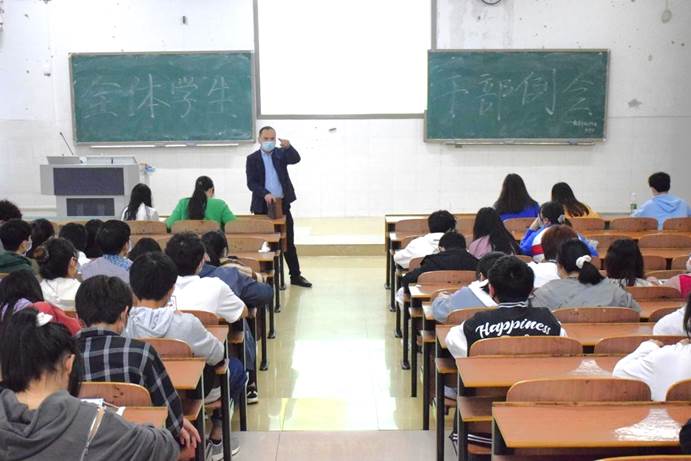 4月5日下午6点20分,我院于理科楼(1)505教室召开全体学生干部例会,本次会议我院党总支副书记谭全球、辅导员周长恩、贺妮、谢炎伶老师发表了讲话,我院全体学生干部参加本次会议。