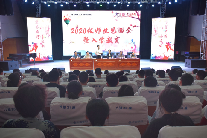 9月21日晚7点,我院2020级师生见面会暨入学教育大会于音乐厅隆重举行。本次大会由我院党总支副书记谭全球主持,我院党总支书记杨家骏,院长杨柳、副院长李龙、数学与应用数学系主任曾云辉老师、信息与计算科学系主任李元旦老师以及各级辅导员老师出席本次大会,2020级全体本科及研究生新生到场听讲。