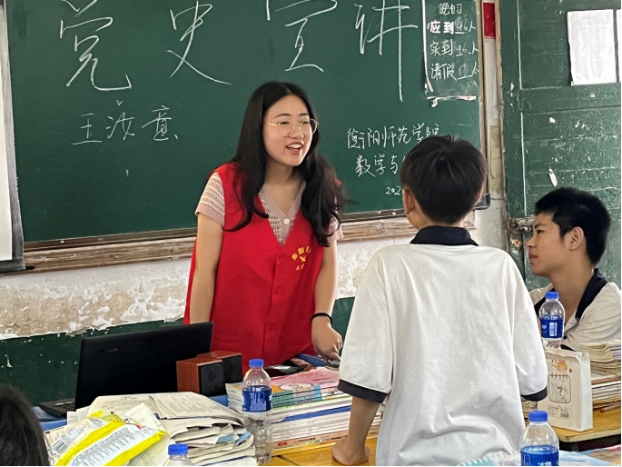 喜迎二十大,永远跟党走,奋进新征程。6月27日至7月1日,衡阳师范学院17c起草红桃教育帮扶实践团13名志愿者开展“青春献礼二十大,红旗飘扬‘数’嘉善”为主题暑期“三下乡”社会实践活动,将诗朗诵和红色故事宣讲带到了衡阳市珠晖区第一中学的课堂,促进学生全面发展。