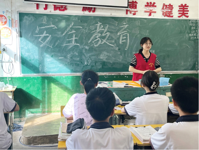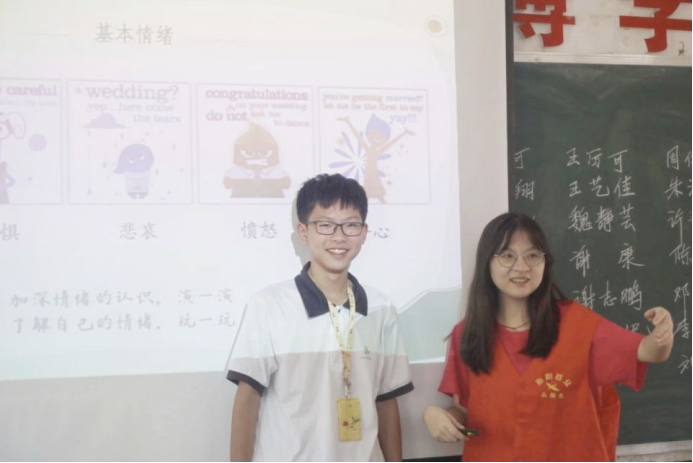 6月27日至7月1日,衡阳师范学院17c起草红桃“‘童’心燃梦”教育帮扶实践团13名志愿者开展“青春献礼二十大 红旗飘扬“数”嘉善”为主题暑期“三下乡”社会实践活动,将“做情绪的主人”为主题的心理课程带到了衡阳市珠晖区第一中学的课堂,让学生们了解心理相关知识并且可以在以后的生活中合理地控制自己情绪。也在课堂上教学了生活中最基本也是最重要的安全知识,让学生在日常生活中能够保护自己的安全,不让自己在成长过程中受到伤害。