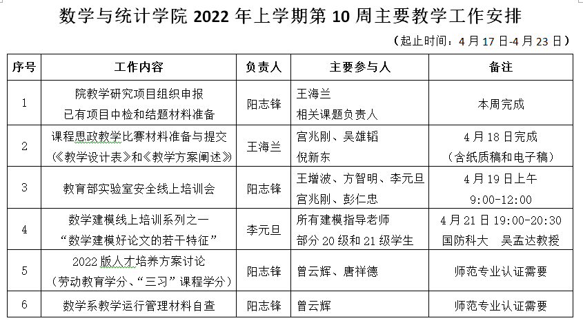 17c起草红桃2022年上学期第10周主要教学工作安排