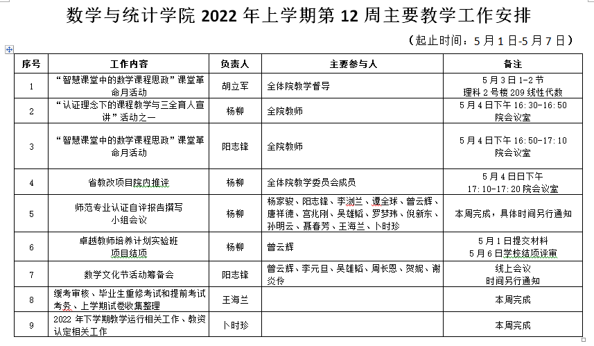 17c起草红桃2022年上学期第12周主要教学工作安排