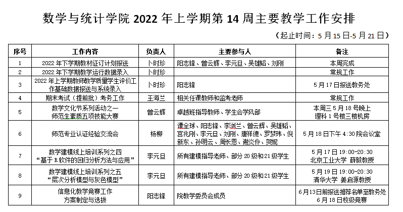 17c起草红桃2022年上学期第14周主要教学工作安排
