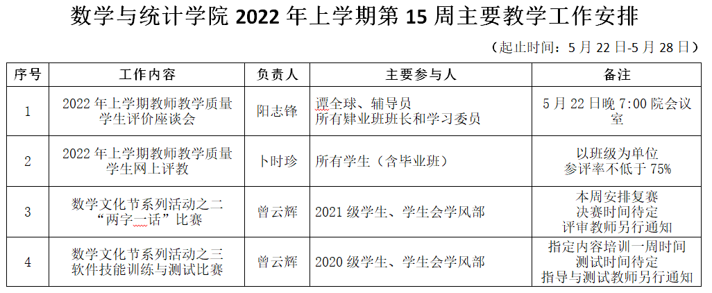 17c起草红桃2022年上学期第15周主要教学工作安排