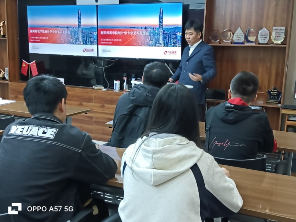 为提升学生就业竞争力,加强学生专业实践能力,2024年11月18日衡阳师范学院2022级统计学专业学生在方正证券股份有限公司衡阳长丰大道证券营业部召开统计学专业见习见面会。