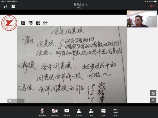 首先,谭教授就我院学生录制的《合并同类项》、《指数函数的概念》《复数的三角表示法》三个片段教学视频进行了详细点评。谭老师认为授课同学都能以问题为导向,引导学生思考,培养了学生“四能”能力,对我院学子的师范技能进行了充分肯定。接着,谭祖荣老师针对每一位同学存在的问题提出了改进建议:一、引入的事例可以适当改进、开门见山;二、数学概念的书写应严谨科学,不能省字漏字;三、例题的讲解应更加具体细致;四、在教学过程中,不要害怕学生出错,教师可以大胆的让学生去板书推导,这才是课堂的亮点。谭教授强调,问辨课堂的核心就是备课,要概念题目化、内容问题化,数学课堂要以问题为导向,让学生带着问题去听课,学生的思想才会更加集中。