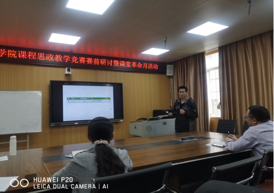 活动分两个环节进行。首先,我院3名教师准备参加学校组织的课程思政教学比赛的老师进行说课,介绍各自课程的思政设计理念和方法。然后,教学督导和老师们进行评课与讨论,从课程思政的内涵、抓手与方式方法等多角度进行了深入研讨。