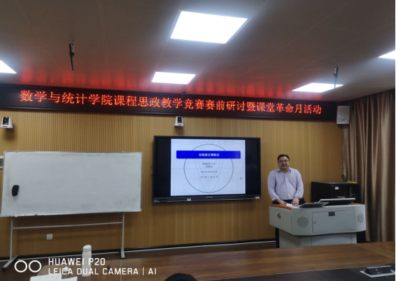 根据教育部《关于深化本科教育教学改革 全面提高人才培养质量的意见》等文件精神,为充分发挥课堂教学育人的主渠道与主阵地作用,贯彻落实立德树人根本任务,高质量推进以“课程思政”和“信息化教学”为目标的课堂教学改革,我院制定了以“智慧课堂中的数学课程思政”为主题的“课堂革命月”活动方案,全面提升我院教师课程思政教学能力,全面提升人才培养质量。本次活动就是属于“课堂革命月”活动中的说课与评课活动。