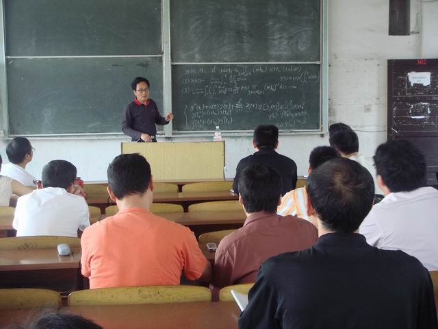 517上午830在老校区综合教学楼302教室,我系罗李平教授作了《具非线性扩散系数的脉冲时滞双曲型方程的振动性》的报告,我系全体教师参加了本次活动。