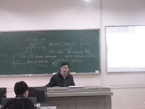 王其如教授在报告中介绍了带有混合单调性的一类时滞反应扩散系统和一类时滞非局部扩散系统行波解的存在性,首先提出了两种不同的混合单调反应项,并基于此给出两组新的上下解的定义;然后通过Schauder不动点定理和单调迭代技巧,将系统行波解的存在性问题转化成上下解的存在性问题,从而得到系统行波解的存在性;最后分别给出了K-型单调和K-型竞争(非局部)扩散Lotka-Volterra系统的两个应用实例。