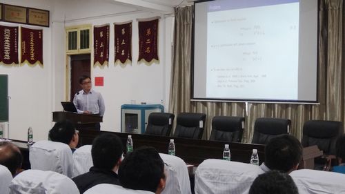 开幕式后是研讨会学术报告,共进行了5场学术报告:中科院数学与系统科学研究院孙聪博士作了题为“Multi-stream algorithm for MIMO AF relay networks”的报告,中科院数学与系统科学研究院姜波博士作了题为“Stiefel流形上优化问题的一个保约束框架及算法”的报告,长沙理工大学周伟军博士作了题为“On Q-linear convergence of two algorithms for equations”的报告。与会教师和专家学者进行了深入的学术交流的探讨。接着,我院龙祖强博士和周志东博士分别作了“模糊控制器的维度灾难与变论域方法”和“一个小图与路和圈的联图的交叉数”的报告。
