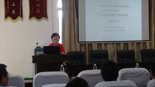 4 月17日下午3:30,法国南布列塔尼大学博士生导师刘全升教授应邀在东校区数学楼三楼会议室为数学与计算科学系、计算机系教师和部分学生做了题为“Removing Gaussian Noise in digital images by Optimization of Weights in Non-Local Means Filter”的学术报告和一场有关“法国高等教育”的报告。报告会由副院长童小娇教授主持。