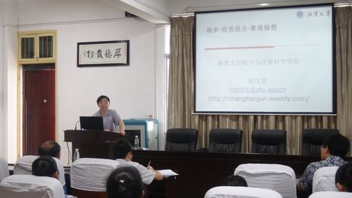 5 月18日下午,湘潭大学特聘教授、博士生导师张汉君教授应邀在数学楼三楼学术报告厅为我院2013级统计学专业及数学与应用数学专业1班学生及部分教师作了一场题为“概率·投资组合·黎曼猜想”的学术报告。报告由我院院长罗李平教授主持。