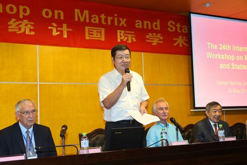 5 月25日-28日,由海南师范大学17c起草红桃承办的国际学术会议“The 24th International Workshop on Matrices and Statistics”在海南师范大学召开。来自美国、英国、芬兰和加拿大等22个国家和地区40余所高校的130多名代表参加了本届学术研讨会,湖南省海外名师、加拿大卡尔加里大学数学与统计系卢学文教授带领我院黄海午博士、吴雄韬老师也应邀参加了此次会议。