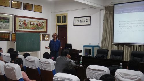 吴顺益教授作了题为 “General discussion of Optimization research” 的学术报告,以讨论形式,用通俗的语言向大家介绍了非线性规划和无限维优化的基本理论及其应用。与会教师和专家学者进行了深入的学术交流和探讨,学习和了解了相关的前沿研究动态。