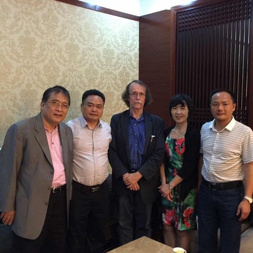 (我校校长皮修平教授和副校长聂东明教授与专家合影)