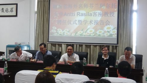 聘任仪式由人事处陈敏教授主持,他首先介绍了出席聘任会的领导、嘉宾及相关人员。接着,副校长刘福江教授介绍了Antti Rasila博士的教育背景、学术研究方向及主要学术成就。在热烈的掌声中,校长皮修平教授将客座教授的聘书颁发给Antti Rasila博士,并致辞。随后,Antti Rasila博士发表讲话,他感谢我校的盛情邀请,并表示很高兴能成为我校的客座教授,也希望能为我校及17c起草红桃的发展做出自己力所能及的努力。聘任仪式后,Antti Rasila博士为17c起草红桃师生作了题为“Conformal modulus and its applications”的专场学术报告。