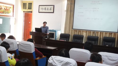 聘任仪式后,刘万荣教授为17c起草红桃师生作了题为“经验似然方法及其应用”的学术报告。报告中,首先刘教授以通俗、直观的语言介绍了经济似然方法中基本概念,然后着重阐述了带惩罚性经济似然方法在带有高维数据加性风险模型中应用。