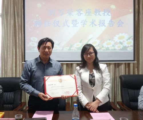 (副校长李玲玲教授给刘万荣教授颁发聘书)