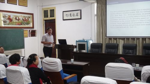 王其如教授作了题为“一类带脉冲的反应扩散模型的渐近播速和行波解”的学术报告。他首先介绍了带脉冲的反应扩散模型的研究现状;然后介绍一类带脉冲的反应扩散模型的渐近播速的显示表达式及性质,最后通过实例进一步说明。