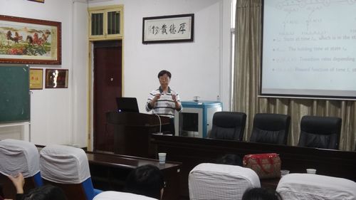 国家杰青中山大学博士生导师郭先平教授作了题为“Finite horizon continuous-time MDPs”的学术报告。他首先简单介绍了马尔科夫决策过程模型的优化问题的发展历程和研究现状;接着通过Ito-Dynkin公式及分析技巧得到一类带有连续时间型的马尔科夫决策过程模型最优解的存在性和唯一性;然后列举了一类可控的生-灭系统来验证所获得结果;最后就科研及人才培养进行了深入指导。