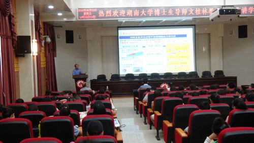 6月24日上午,我院邀请了我校校友,国家杰出青年基金获得者,国家百千万人才工程具有突出贡献中青年专家,湖南省芙蓉学者特聘教授,湖南大学博士生导师文桂林教授来我校讲学,报告会在外语楼311举行,报告会由我院院长杨柳教授主持,我院师生200多人参加,会后副校长聂东明教授与文教授亲切交流,并对文教授给予母校的指导表示感谢。