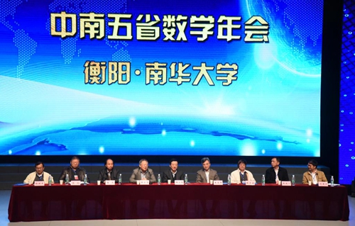 2016 年10月28日至30日,2016第五届中南五省数学年会在南华大学召开。湖南省数学学会理事长、湘潭大学校长黄云清教授,中山大学副校长朱熹平教授,广东省数学学会理事长姚正安教授,湖北省数学学会理事长陈化教授,广西数学学会理事长、桂林航空工业学院院长易忠教授,海南省数学学会理事长张诚一教授,江西省数学学会理事长杨健夫教授及来自广东、广西、海南、湖北、湖南、江西(观察员身份)各高校400余名专家学者齐聚一堂,共襄盛会。南华大学党委副书记阳小华教授出席开幕式并在开幕式上致欢迎辞。